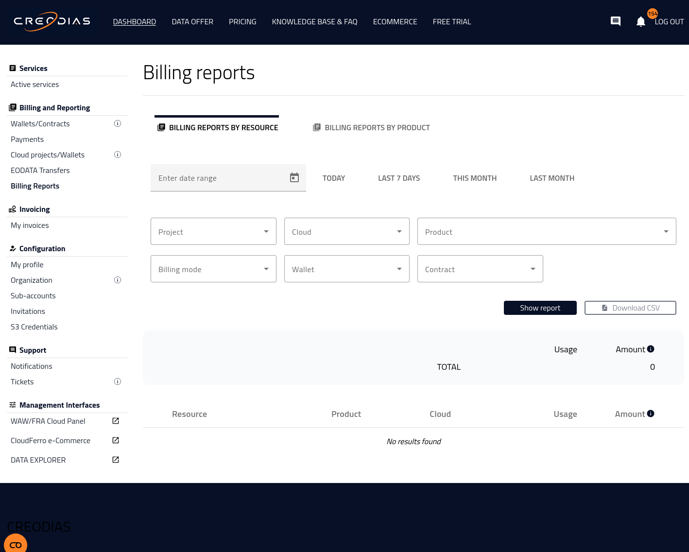Billing Reports on Creodias
